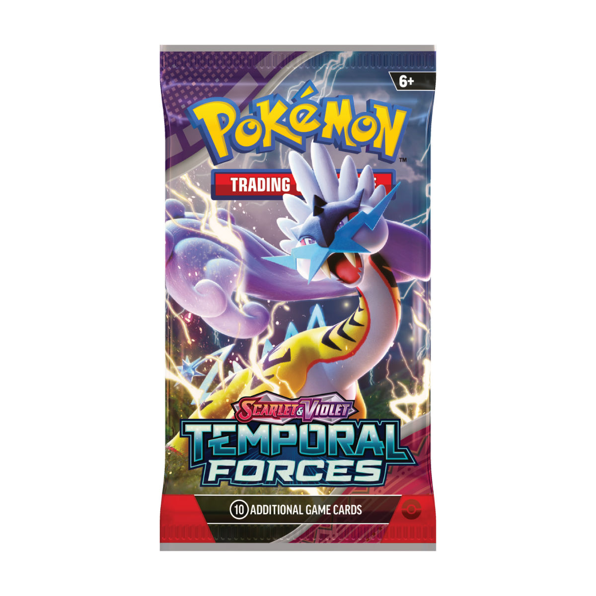 Betreed een wereld waar verleden en toekomst botsen! Walking Wake ex en Raging Bolt ex brengen een oerkracht naar het heden, terwijl Iron Leaves ex en Iron Crown ex een futuristisch randje toevoegen aan de strijd. Buiten Area Zero schitteren Wugtrio en Farigiraf als type-veranderende Tera Pokémon ex. Trainers verwelkomen de terugkeer van ACE SPEC-kaarten, krachtige hulpmiddelen met unieke effecten die je tactieken naar een hoger niveau tillen. Bereid je voor op tijdverstoringen en ontdek de kracht van Ancient en Future Pokémon in de Scarlet & Violet—Temporal Forces SV05 uitbreiding!