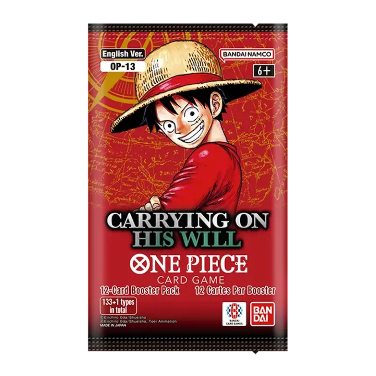 Bandaii introduceert de nieuwe fase aan kaarten met de One Piece OP13 - Carrying on his Will. Deze unieke uitbreiding geeft wederom krachtige ondersteuning aan decks waarbij de drie broeders Centraal - Ace, Sabo en Luffy. Hierbij wordt een nieuwe leader geïntroduceerd: Gol.D.Roger