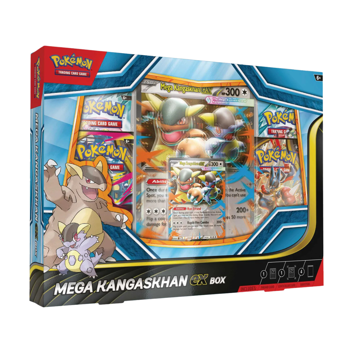 Deze speciale box bevat zowel een speelbare foil promokaart als een oversized lenticulaire kaart van Mega Kangaskhan ex voor in je display. Met daarbovenop vier boosterpacks vol nieuwe kansen op geweldige pulls is dit een must-have voor elke Pokémon Trainer.