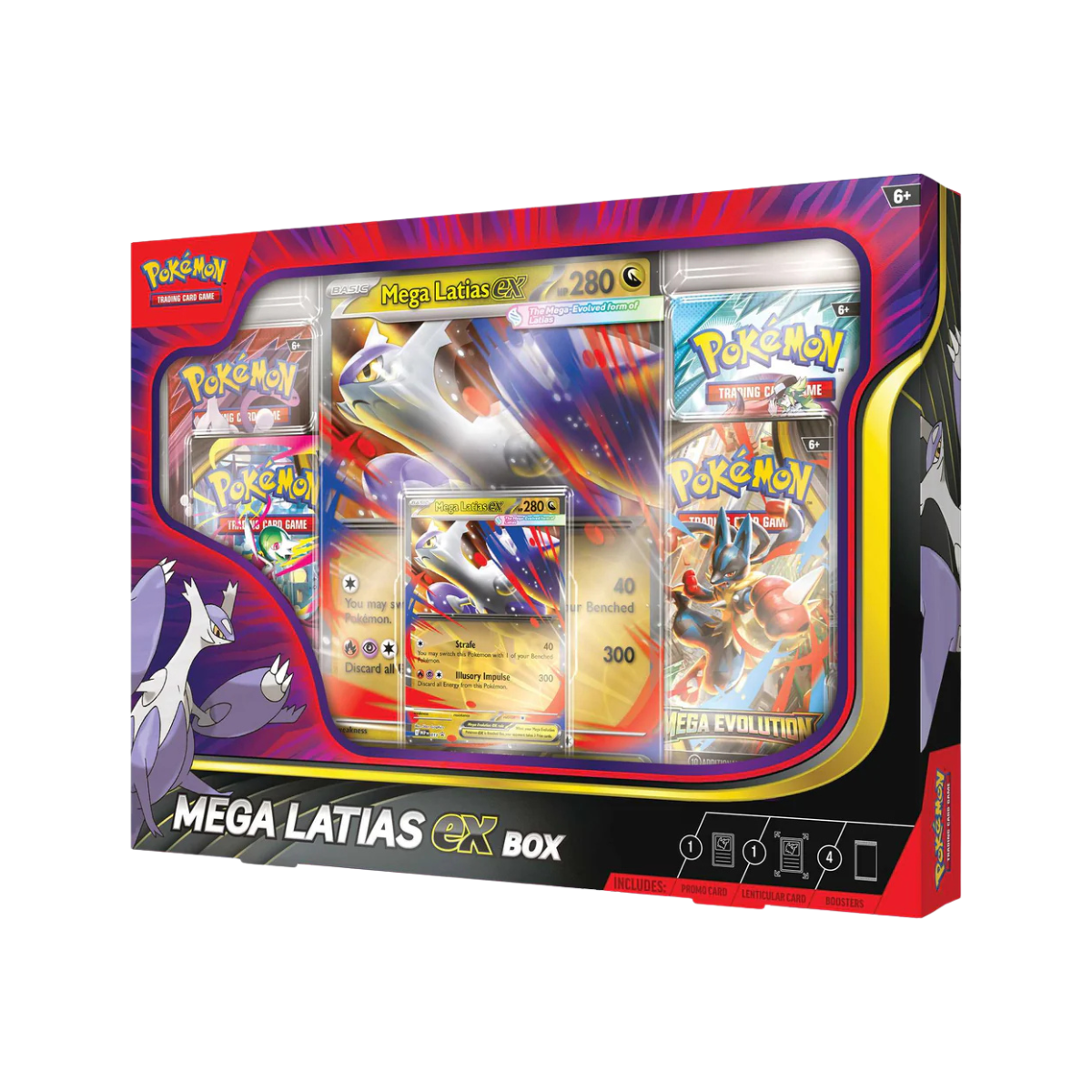 Vlieg hoger dan ooit met Mega Latias ex! Mega Evolutie brengt de kracht van de Legendarische Pokémon Latias naar ongekende hoogte. Met verbluffende snelheid en draconische energie scheert Mega Latias ex door de lucht — en nu kun jij deze kracht aan je zijde zetten!