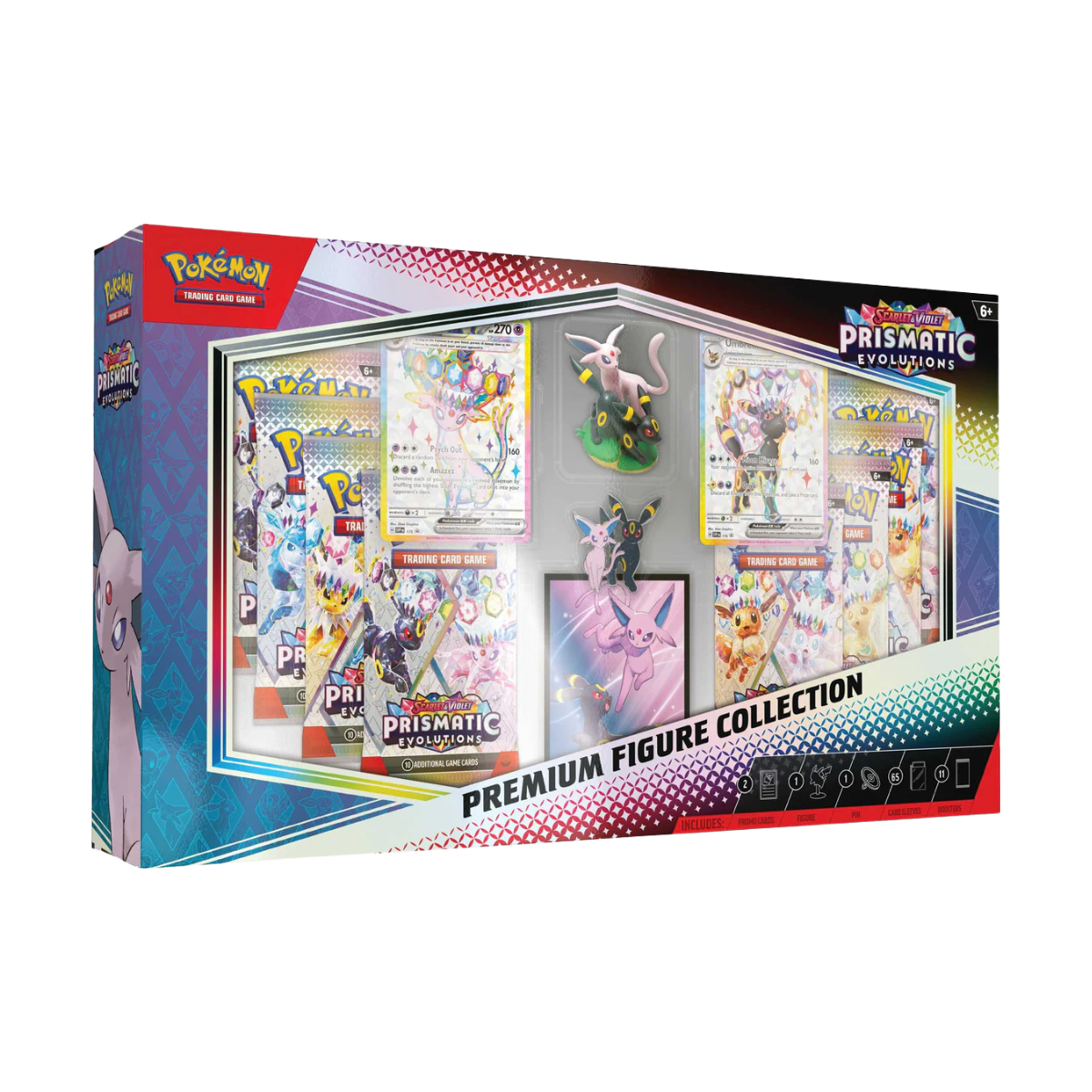 ✅ 2 etched foil promokaarten van Espeon ex en Umbreon ex ✅ 1 collectors figure met Espeon & Umbreon ✅ 1 enamel pin ✅ 65 kaarthoesjes ✅ 11 Boosters uit de speciale Scarlet & Violet—Prismatic Evolutions set (aantal nog bevestigen afhankelijk van officiële release-informatie)