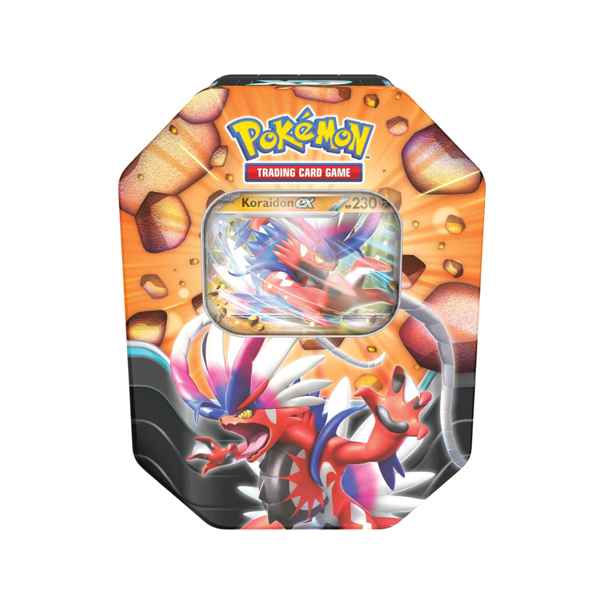 Maak je klaar om het slagveld te domineren met de Slashing Legends Ex Tin! In deze tin staat één van twee legendarische krachtpatsers centraal: Zacian ex of Koraidon ex. Beide Pokémon zijn klaar om dwars door elke tegenstander heen te snijden – of je nu speelt of verzamelt.